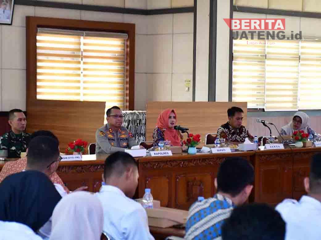 Bupati Fadia Arafiq (tengah) saat memberi arahan di Rakor MBG di Aula Setda Kabupaten Pekalongan pada Kamis, 2 Oktober 2025. (Lingkar Network/Beritajateng.id)