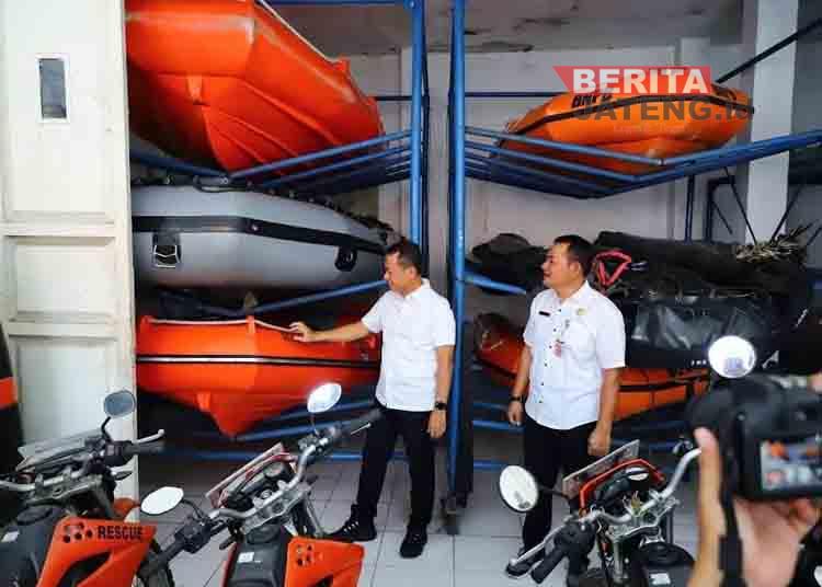 Bupati Sam’ani Intakoris meninjau peralatan BPBD Kabupaten Kudus pada Rabu (29/10). (Lingkar Network/Beritajateng.id). (Lingkar Network/Beritajateng.id)