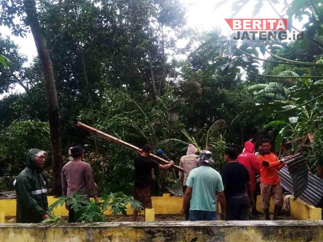 Usai angin puting beliung, puluhan warga lantas berjibaku menyingkirkan genting, kayu, dan material bangunan yang berserakan. Mereka bergotong-royong demi mempercepat pemulihan di lingkungan RT 06 RW 05, Kelurahan Kumpulrejo.